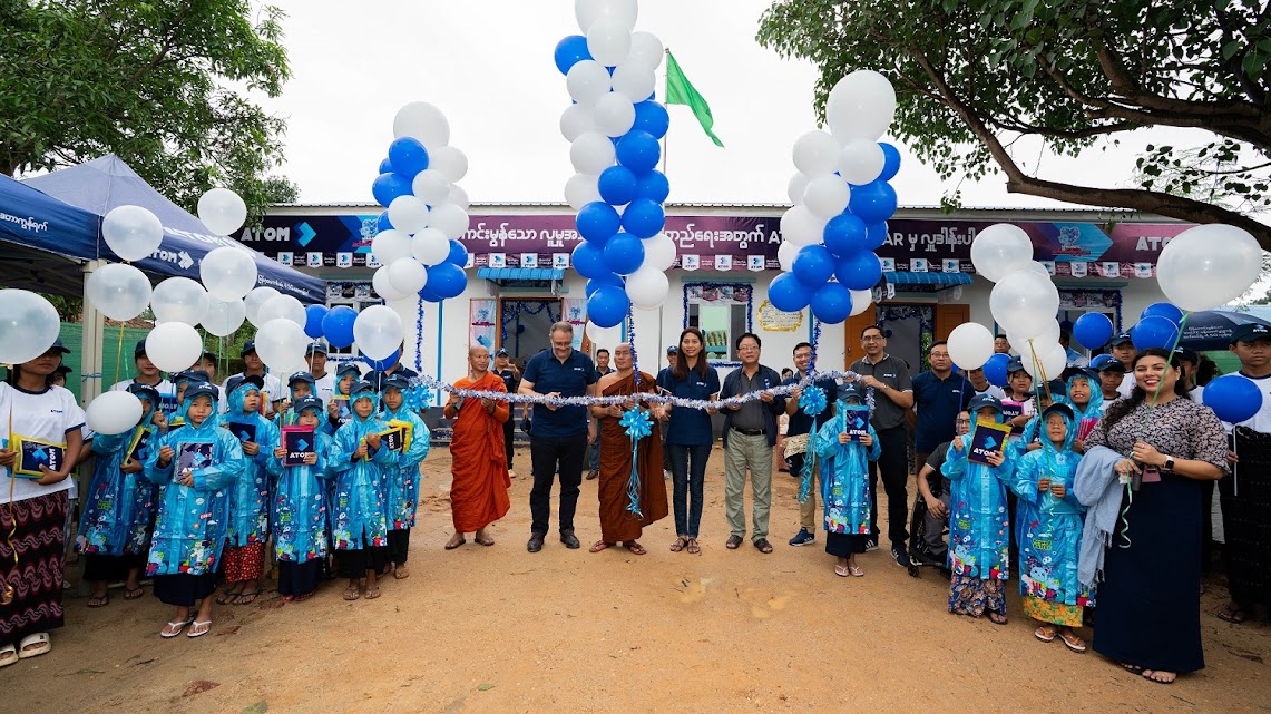ဧပြီလနှင့် ဇူလိုင်လ ၂၀၂၅ ခုနှစ်အတွင်း စတင်တည်ဆောက်ခဲ့ပြီး ဩဂုတ်လ ၁ရက်နေ့၊ ၂၀၂၅ ခုနှစ်တွင် ဖွင့်လှစ်ခဲ့သော ပေ (၂၀’x၆၀’) အကျယ်အဝန်းရှိစာသင်ကျောင်းသစ်သည် အက်တမ် (ATOM) ၏ လူမှု အသိုင်းအဝိုင်း ဦးစားပေးသည့် ယဉ်ကျေးမှုနှင့် ထိရောက်သော အကျိုးသက်ရောက်မှုကောင်းများဖော်ဆောင်ရန် စိတ်အားထက်သန်မှုကို မီးမောင်းထိုးပြလျက်ရှိသည်။အဆိုပါကျောင်းဆောင်သစ်သည် ရေဘေးဒုက္ခကြောင့် နဂို မူလစာသင်ကျောင်းပျက်စီးသွားခဲ့ရပြီးအခက်အခဲကြုံတွေ့ခဲ့ရသော မွေးကင်းစကလေးငယ်များနှင့်ကျောင်းနေ အရွယ်ကလေးဦးရေ စုစုပေါင်း (၃၄၀) အတွက် လုံခြုံစိတ်ချရပြီးတည်တံ့ခိုင်မြဲသော သင်ကြားရေးနဲ့ သင်ယူရေး ပတ်ဝန်းကျင်ကောင်းတစ်ခုဖြစ်လာစေမည်ဖြစ်ပါသည်။